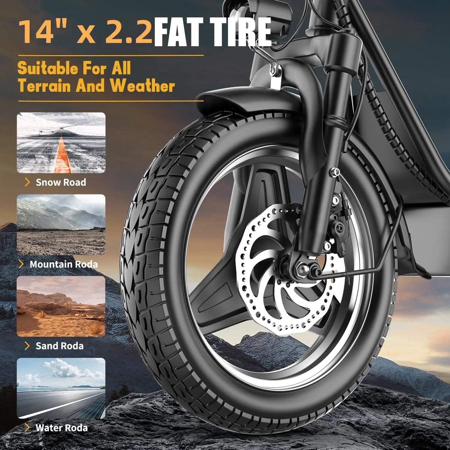 [Full Suspension and 14" Fat Tires] The e scooter comes with full shock absorptions (front, rear suspension, and seat shock) that significantly reduce shock, making your ride more comfortable and stable. The 14" large pneumatic tires have excellent grip, high elasticity, and wear resistance,suitable for multiple road conditions